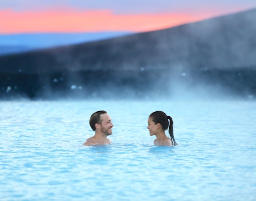 Dyp dig i geotermiske pools omgivet af sorte lavaklipper med behandlinger med silica-muddermasker for at få en ægte islandsk oplevelse.