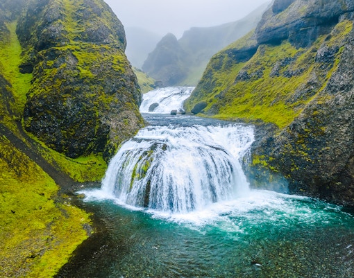 Die Südküste Islands ist eine beeindruckende Naturlandschaft, die sich von Reykjavík bis nach Vik erstreckt, wo Gletscher, Wasserfälle und schwarze Sandstrände auf den Atlantik treffen. Die Landschaft, die durch vulkanische Aktivität und Gletscherschmelze geprägt wurde, zeichnet sich durch flussgespeiste Ebenen, Küstenklippen und schneebedeckte Berge aus. Die Südküste ist leicht erreichbar und bietet je nach Licht und Wetter ein sich ständig wandelndes Bild – ein eindrucksvoller Einstieg in die raue, elementare Landschaft Islands.