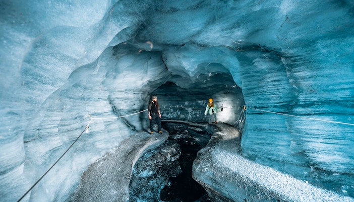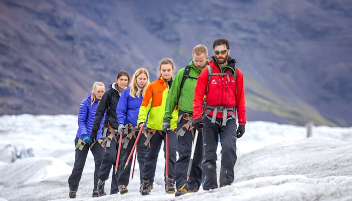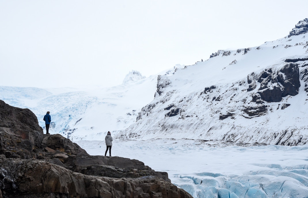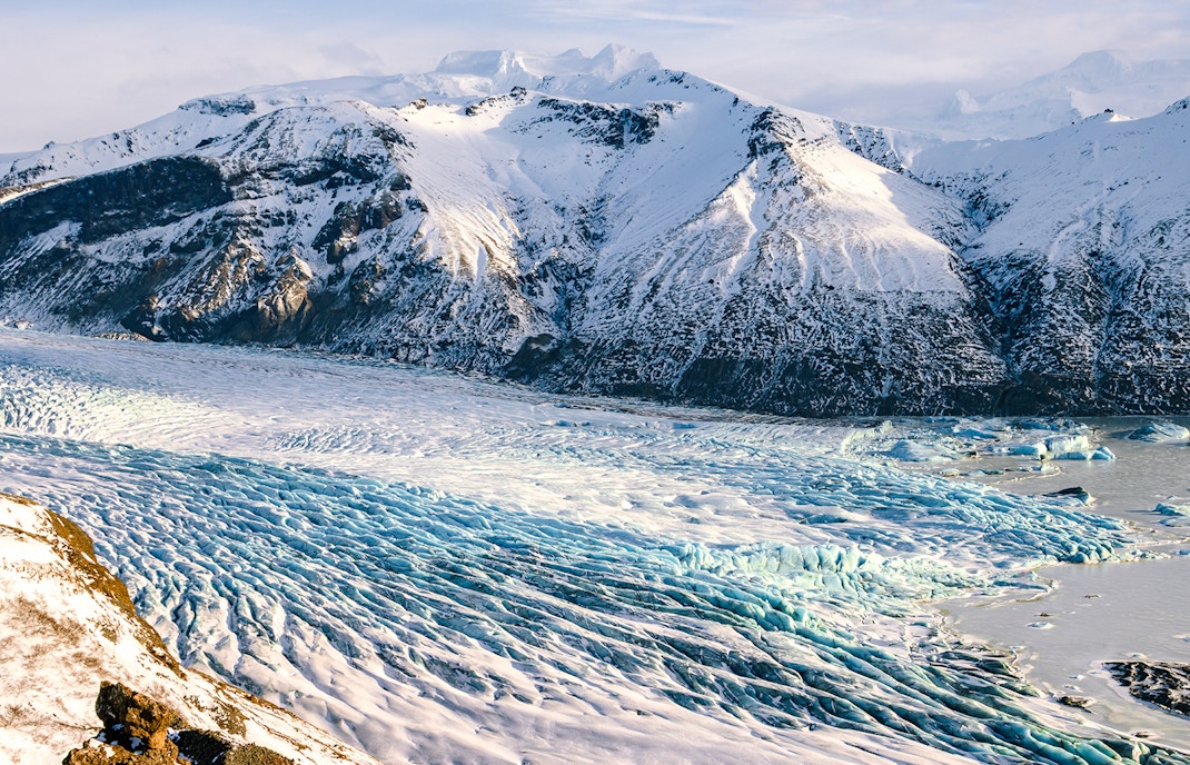 Le glacier de Skaftafell est un glacier d'écoulement du Vatnajökull, le plus grand calotte glaciaire d'Europe, situé dans le parc national du Vatnajökull, sur la côte sud de l'Islande. Sculpté par des siècles de lent mouvement glaciaire, il présente des crevasses, des crêtes et une glace bleue saisissante mise à nu par la fonte saisonnière. Le glacier descend à partir des hauts champs de glace pour se jeter dans un paysage composé de cendres volcaniques noires, de mousse verte et de moraines rocheuses, créant ainsi de marqués contrastes de couleurs et de textures. Réputé pour son accès relativement facile et son relief bien dessiné, le glacier de Skaftafell constitue un point de départ incontournable pour les randonnées guidées sur glacier, l'escalade sur glace et l'exploration hivernale de grottes de glace, offrant ainsi aux visiteurs une expérience immersive et concrète de l'environnement glaciaire islandais.