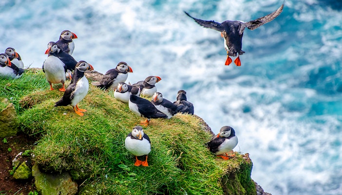 Cette petite île inhabitée porte bien son nom : « Lundey » signifie littéralement « île des macareux » et accueille des centaines de milliers de macareux moines pendant la saison de reproduction. À l'abri de riches eaux poissonneuses, cet endroit attire les oiseaux marins à partir de mai jusqu'à août. Certaines excursions à partir de Húsavík combinent l'observation des baleines et des macareux, offrant ainsi une vue spectaculaire sur la faune depuis le bateau.
