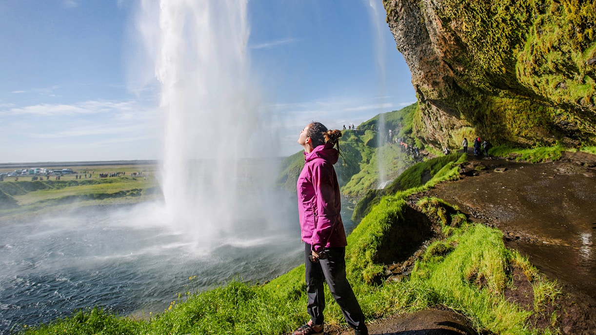 Break up the drive with iconic stops like Seljalandsfoss and Skogafoss, towering cascades where you can walk behind the falls or feel the mist up close.