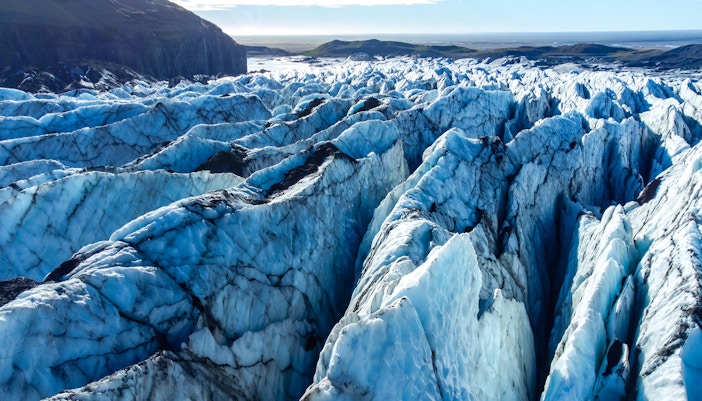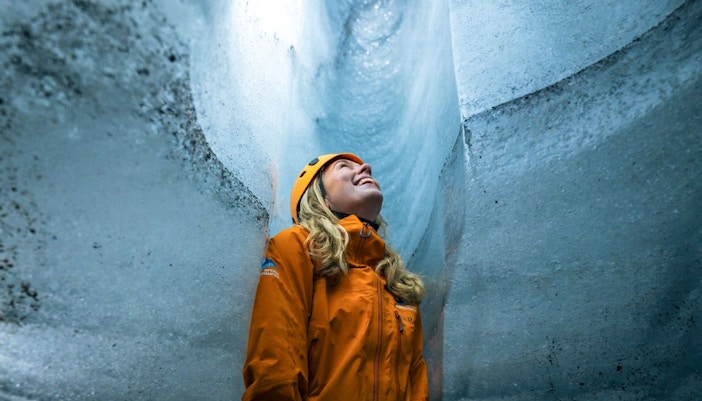 In winter, venture inside a naturally-formed ice cave beneath Vatnajokull. Otherworldly blue walls and icy tunnels make this a once-in-a-lifetime adventure.
