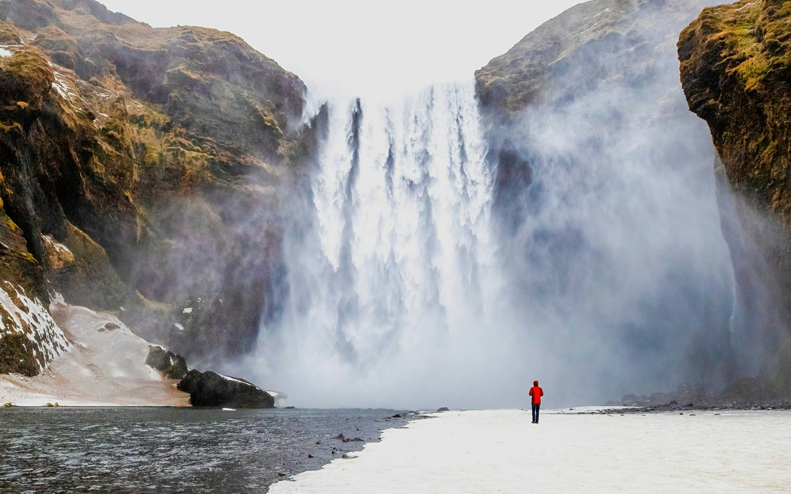 Break up the drive with iconic stops like Seljalandsfoss and Skogafoss, towering cascades where you can walk behind the falls or feel the mist up close.
