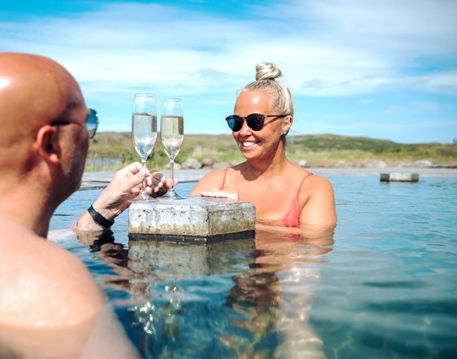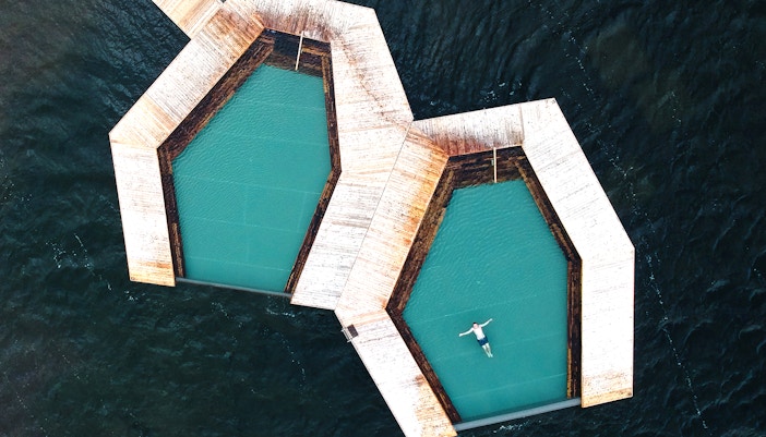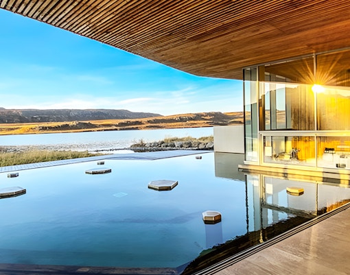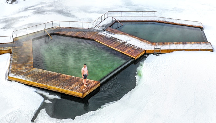Vok Baths szczyci się jedynymi na Islandii pływającymi basenami, zaprojektowanymi tak, aby spoczywały na powierzchni jeziora Urriðavatn. Z krawędziami nieskończoności płynnie łączącymi się z wodą, te dwa baseny oferują nieco różne temperatury i możliwość zanurzenia się prosto w jeziorze w celu orzeźwiającej kąpieli.