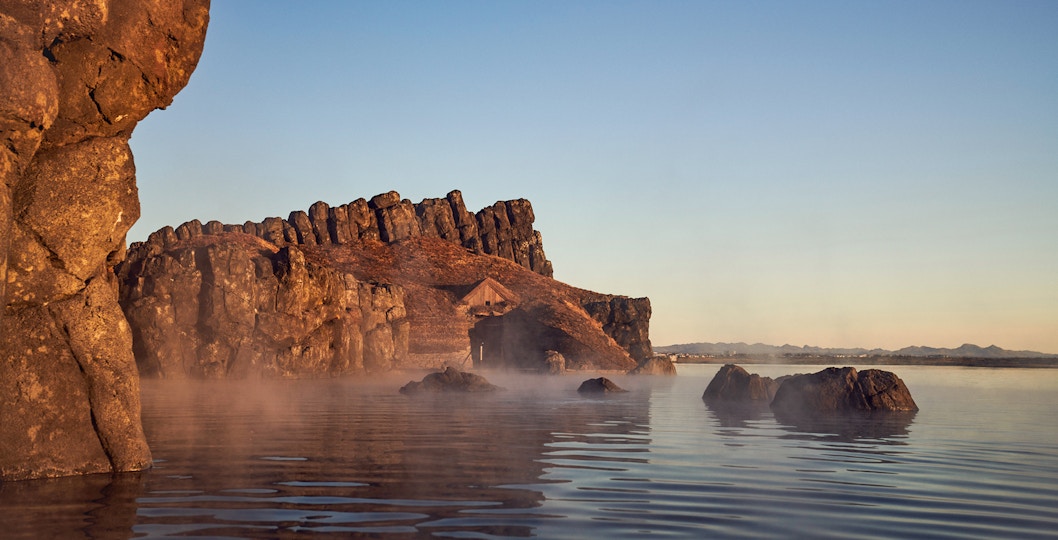 The water in the geothermal lagoon is naturally heated by underground hot springs, but the pool itself is man-made. However, it has been designed to mimic Iceland’s raw and wild natural landscape, with tall grey stone walls topped with turf, and its own waterfall.