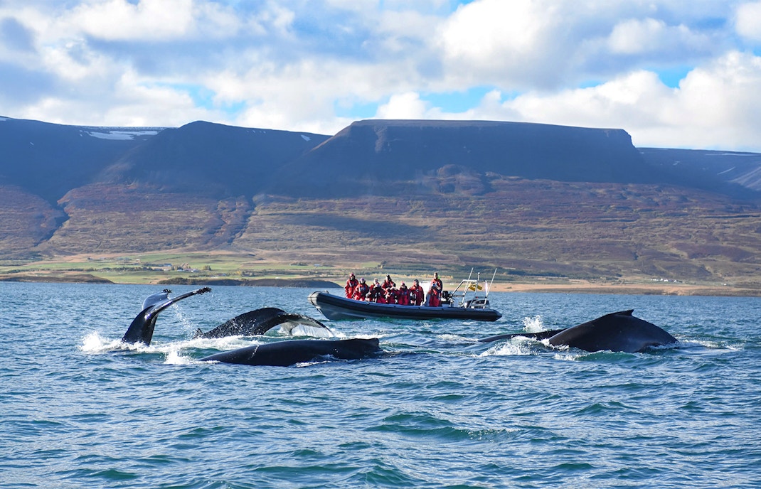 Öppna vikar som Faxaflói nära Reykjavík utsätts för Atlantens strömmar och fungerar som korridorer för vandringsvalar som minkar, fenvalar och ibland blåvalar som rör sig längs den mittatlantiska rutten. Skyddade fjordar på norra Island, inklusive Eyjafjörður nära Akureyri och Skjálfandi Bay nära Húsavík, är lugnare och varmare, vilket gör att valarna kan stanna kvar och äta i dagar eller veckor i stället för att passera.