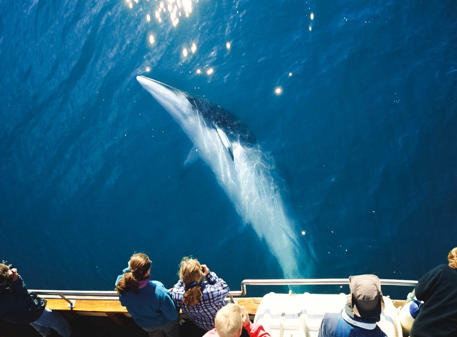 Common sightings include humpback whales and minke whales, along with dolphins and porpoises. Blue whales, fin whales, and orcas are rarer but possible, especially mid-summer.